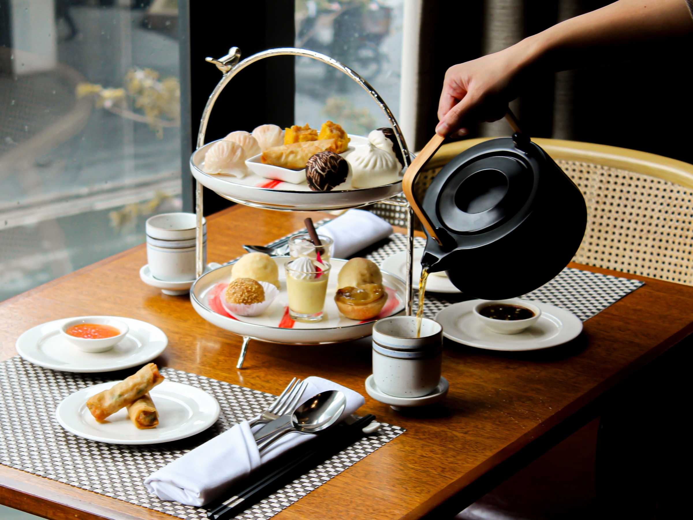 A delightful selection of Chinese-inspired sweet and savory bites, perfectly paired with premium tea—ideal for a relaxing midday indulgence.